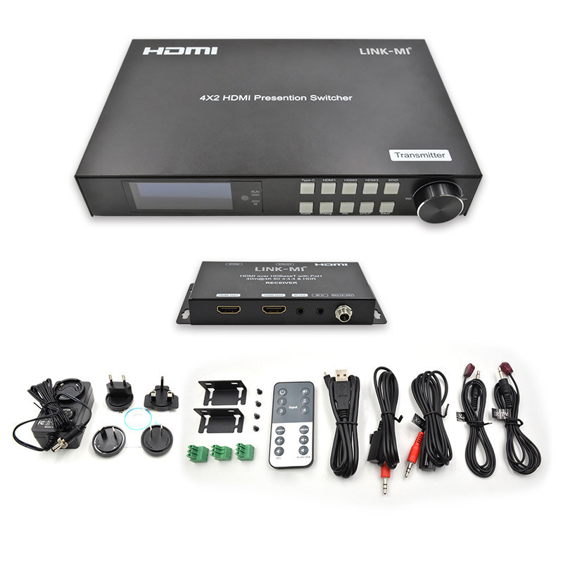 LINK-MI LM-SWE02 HDMI 2.00 HDBaseT स्विच HDMI और USB-C इनपुट के साथ आता है। यह 4K@60hz YUV4 का समर्थन करता हैः4:4, 18जीबीपीएस, पीओसी और बटन, रिमोट, आरएस232 और आईपी नियंत्रण जैसी कई नियंत्रण विधियां।